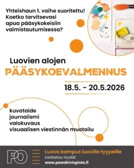 Luovien alojen pääsykoevalmennus 18.-20.5.2026 klo 16-20