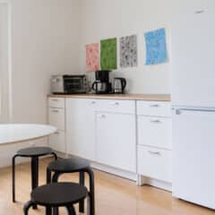 Ruiskukassa on yhteinen keittiö, kylpyhuone ja wc.